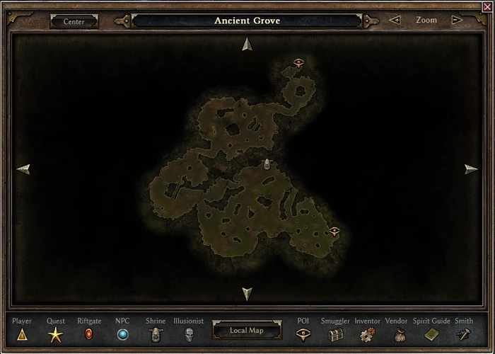The Ancient Grove is a world area in Act 5 with the entrance located in the southeast corner of Ugdenbog. The area has three sections, with the last two comprising one of Grim Dawn's sealed Challenge Dungeons. A Skeleton Key is required to enter the Feral Thicket and Tainted Wood, and the player cannot use a riftgate to exit; the only way out is via death or completing both levels.